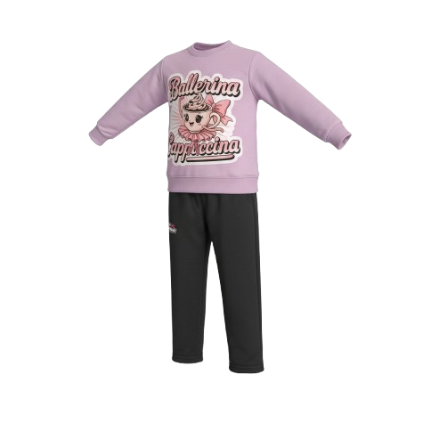 Conjunto con pantalón negro y buzo en 3 tonos disponibles (palo de rosa, lila y gris). estampados en la parte delantera.