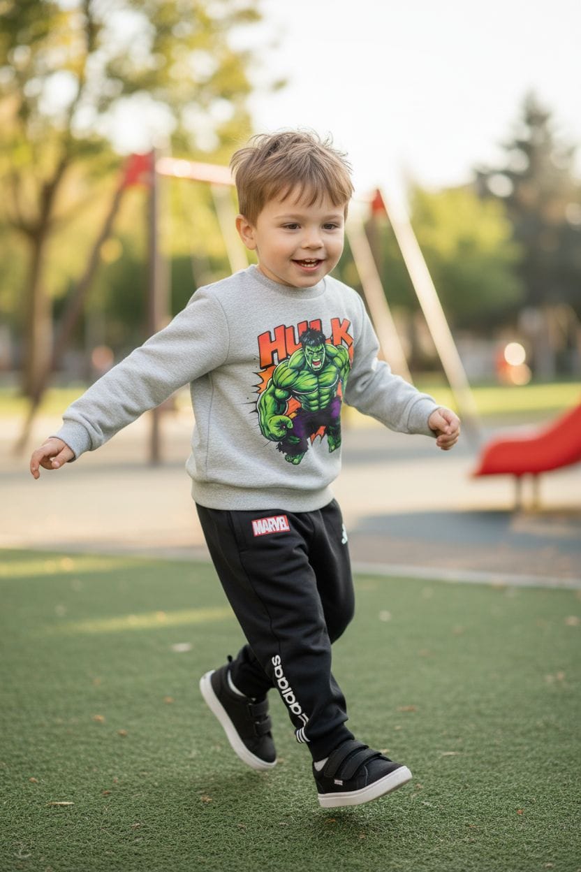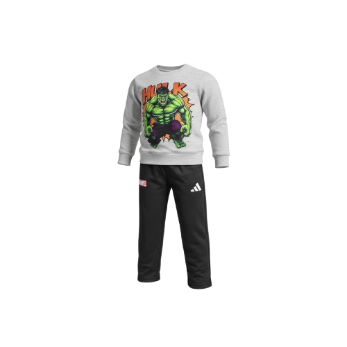 Conjunto con pantalón negro y buzo en 3 tonos disponibles (azul, rojo y gris). estampados en la parte delantera.